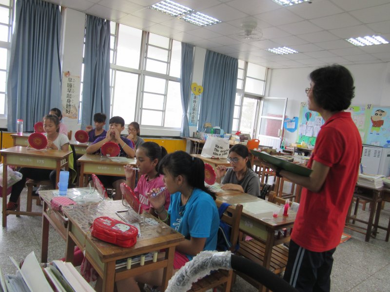 六年級潔牙比賽由班導師及惠敏師.護理師來評分