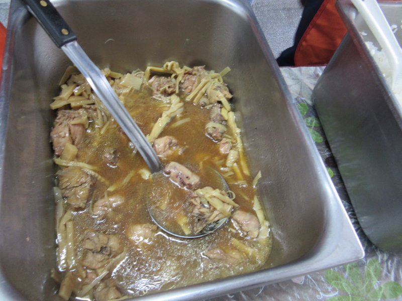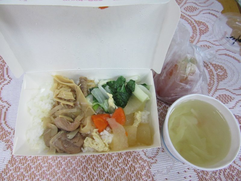 白米飯.筍香雞.五彩雪蓮.有機小白菜.珍菇蔬湯