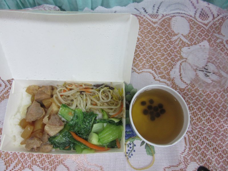 白米飯.白玉燒肉.什香豆芽.青江菜.愛玉山粉圓
