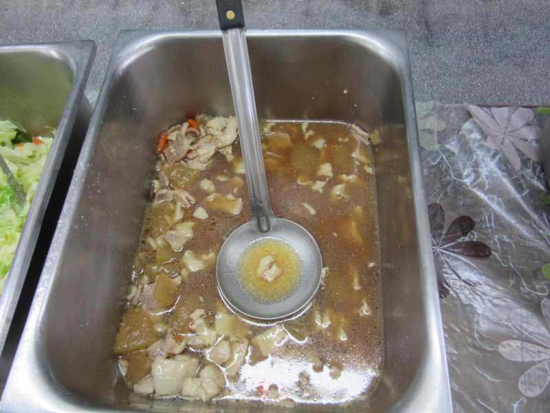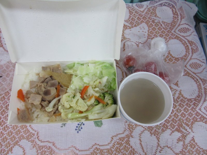 白米飯.肉片瓜香.香炒雙椰.有機高麗菜.四神湯.小蕃茄