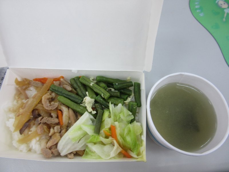 白米飯.魚香肉絲.豆香季豆.高麗菜.味增湯