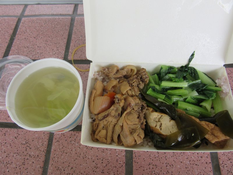 子米飯.豆瓣雞丁.海結油腐.青江菜.蛋花菇湯