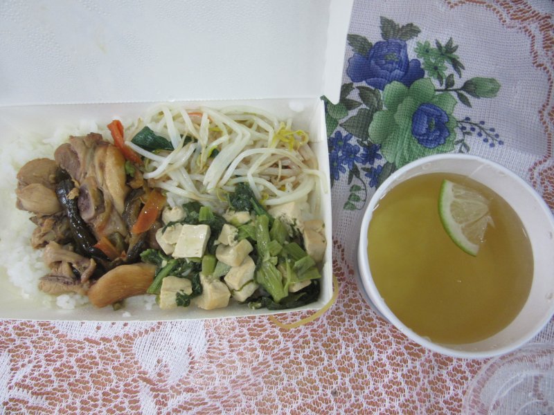 白米飯.條瓜燒雞.干丁雪菜.豆芽菜.檸檬愛玉