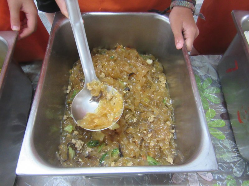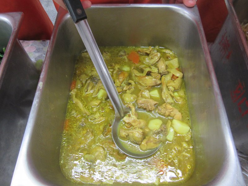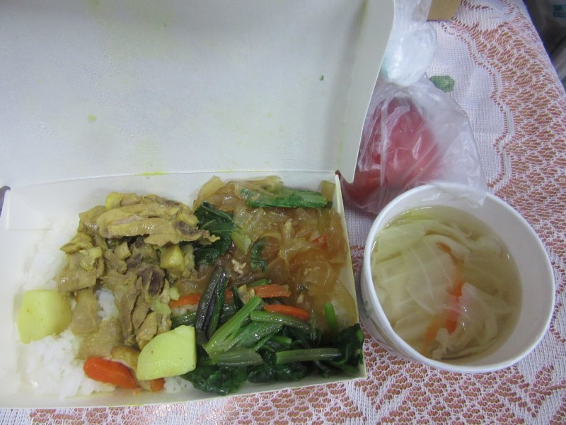 白米飯.咖哩雞肉.沙茶寬粉.有機菠菜.蔬菜湯.小蘋果