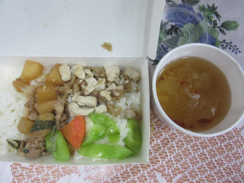 白米飯.打拋豬.碎脯干丁.絲瓜.枸杞銀耳湯