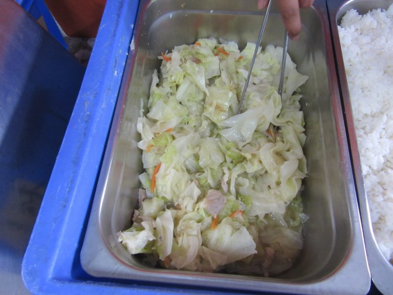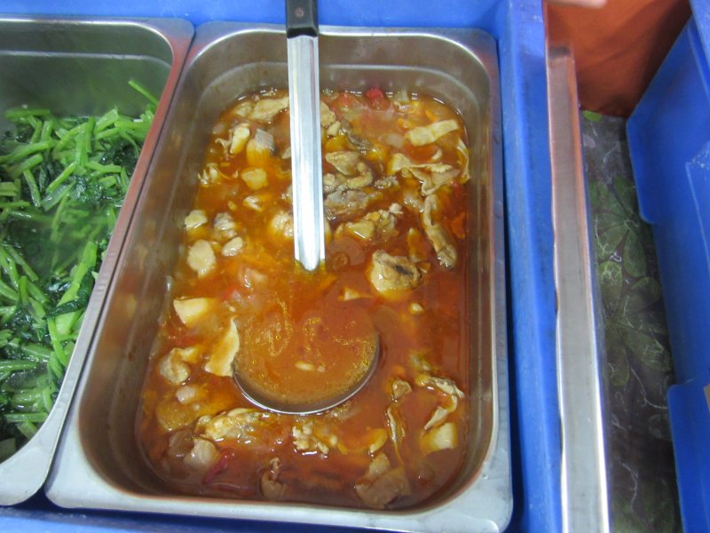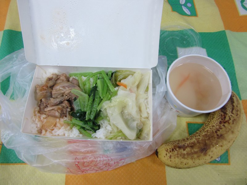 白米飯.茄汁雞 丁.玉菜肉絲.有機油菜.時瓜雪蓮湯.香蕉