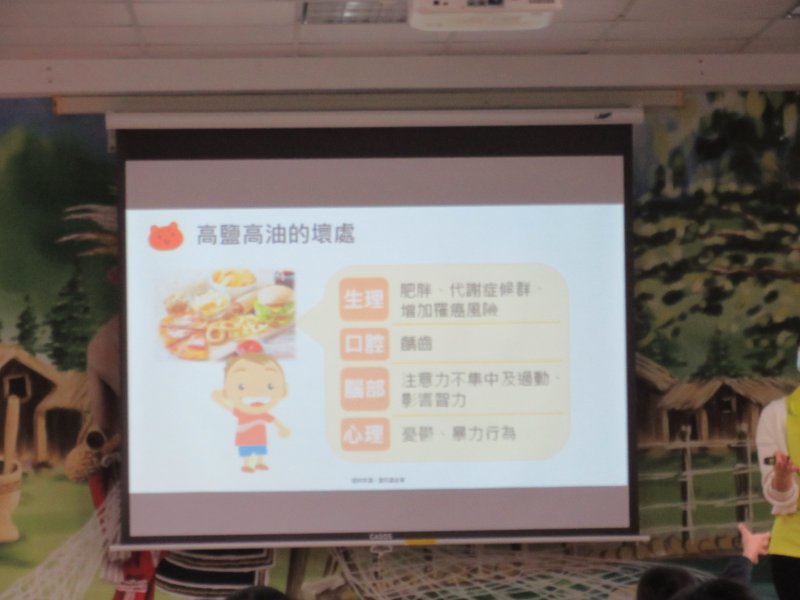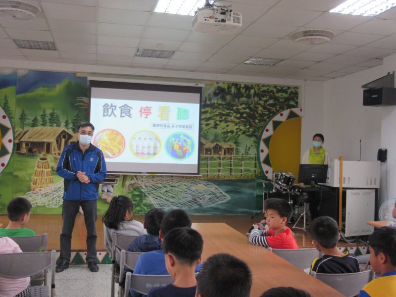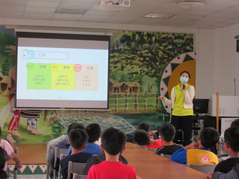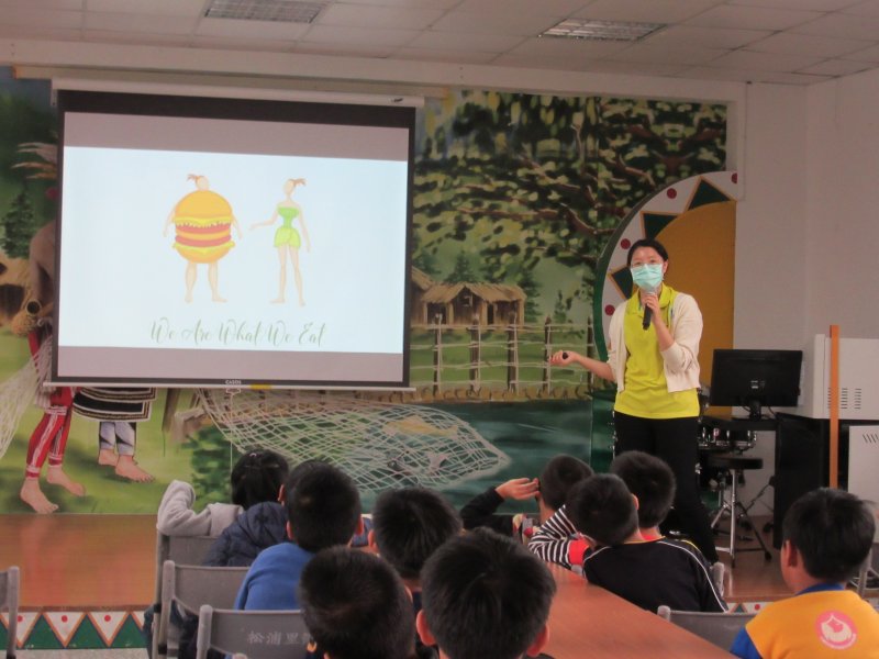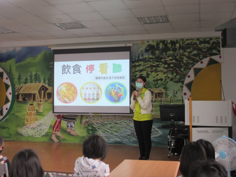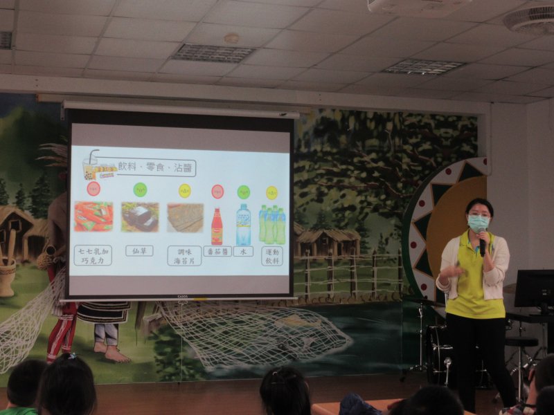 馨儂午餐營養師黃子芸到校宣導飲食停看聽,讓學童了解甚麼是紅燈食品要少吃,黃燈食品;綠燈原形食品要多吃