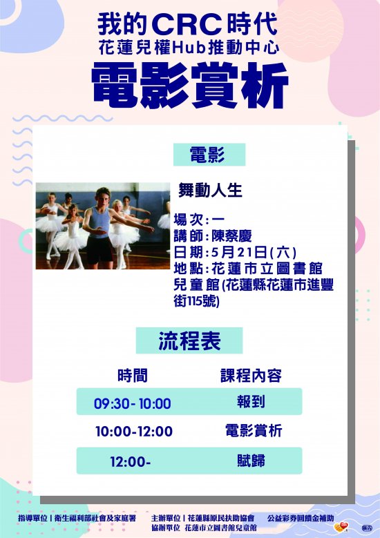 一、隨函附上活動報名簡章、宣傳海報,協請貴單位公布講堂 資訊並派員參與。 二、配合政府防疫政策,活動辦理期間遵守防疫規範,參與活 動者需全程配戴口罩、進場採用實聯制、維持社交距離 等。 三、各場次報名人數:限20名,額滿為止。 四、線上報名網址:https://bit.ly/3rAdOVu 五、活動專線:03-8313523 林專員。