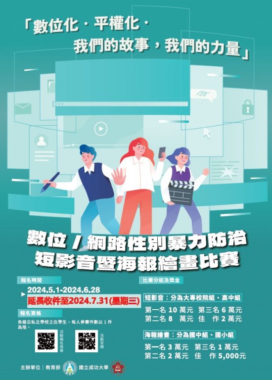 因應本案比賽延長徵件時間至113年7月31日(星期三),檢附修正之簡章及海報電子檔(如附件1、2)各1份。